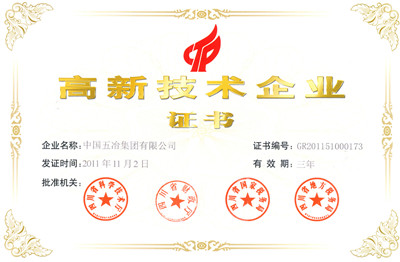 ??2011年11月,中國五冶集團(tuán)榮獲由國家科技部核準(zhǔn),四川省科學(xué)技術(shù)廳、財(cái)政廳、國家稅務(wù)局、地方稅務(wù)局頒發(fā)的“高新技術(shù)企業(yè)”證書。