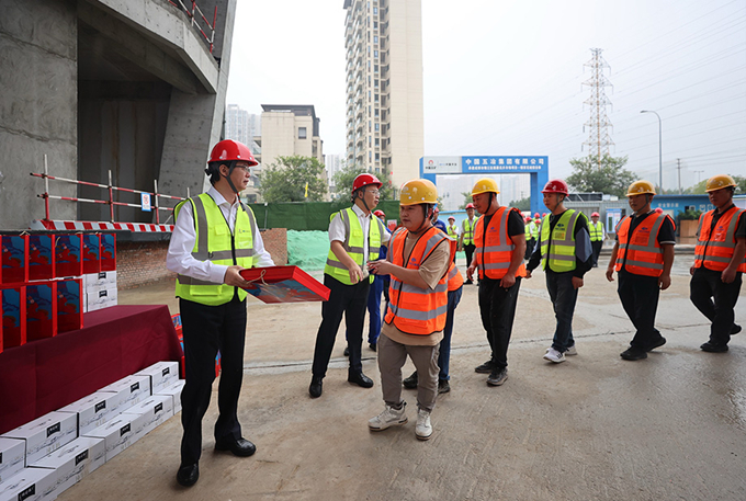 朱永繁董事長(zhǎng)一行先后走進(jìn)錦官花城綜合體、龍泉東洪片區(qū)開(kāi)發(fā)項(xiàng)目現(xiàn)場(chǎng),詳細(xì)了解工程概況、工期進(jìn)度、策劃編制及執(zhí)行、履約管理等方面情況,向節(jié)日期間堅(jiān)守崗位、辛勤工作的各位員工、合作伙伴、廣大工友表示敬意和感謝,并送上月餅、牛奶、零食、生鮮等慰問(wèn)品,祝福大家國(guó)慶中秋雙節(jié)快樂(lè),叮囑大家安排好節(jié)日期間的工作和生活。